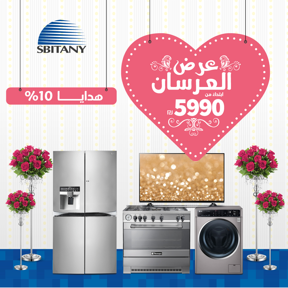 و بناءً على العرض الخاص لهذا العام سيتمكن العرسان من الحصول على أهم ما يلزمهم من الأجهزة الكهربائية ابتداءً من سعر 5990 شيكل فقط تضم "ثلاجة ، غسالة ، طباخ ، و تلفزيون" ؛ و يشتمل العرض على مجموعةمن مُختلف الشركات العالمية مثل إل جي ، بيكو ، فير غاز، ميديا،جليم غاز، سكاي ورث ، و غيرها من الشركات العالمية. بالإضافة لذلك ستقدم الشركة للعرسان بطاقة هدية بقيمة10% من قيمة المشتريات حيث تصل إلىآلاف الشواكلبدون حد أقصى، بالإضافة مع إمكانية تقسيط مشترياتهم حتى 24 دفعة. مع توفر كفاله حتى 10 سنوات ضمان على الأجهزة الكهربائية، وكما أن الشركة والتي تتوفر فروعها في جميع أنحاء الوطن، تقدم خدمة التوصيل المجاني.