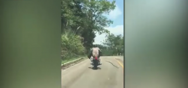 وبحسب الفيديو، حاولت الأفعى لدغ سائق الدراجة، إلا أنه استطاع تلافي اللدغة المميتة، والتقط الفيديو سيارة كانت تسير خلف الدراجة.