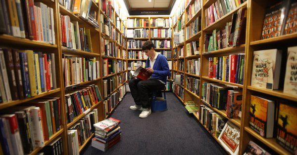 يقول إنه يأتي بالكتب أحيانًا عن طريق مكتبات الاستعارة في الحي الذي يسكن فيه، أو من محل رائع لبيع الكتب المستعملة، أو من المكتبات المستقلة، أو حتى السلاسل، أو بالطبع من خلال منافذ البيع عن طريق الإنترنت.