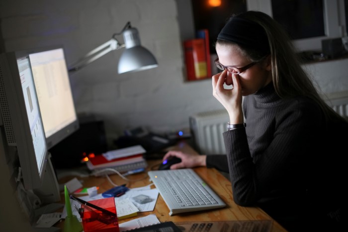عيونان كبشر لم تتطور للتحديق بالشاشات لفترة طويلة، إلا أن التكنولوجيا فرضت علينا ذلك، وهذا ما يجعل أعيننا ترمش بسرعة أقل.