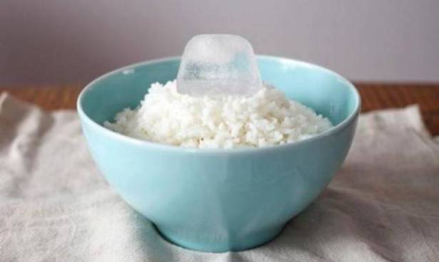 ولهذه الغاية، ضعي على الأرز قطعة من الثلج. وبعد ذلك ضعوه على النار أو في المايكرويف.