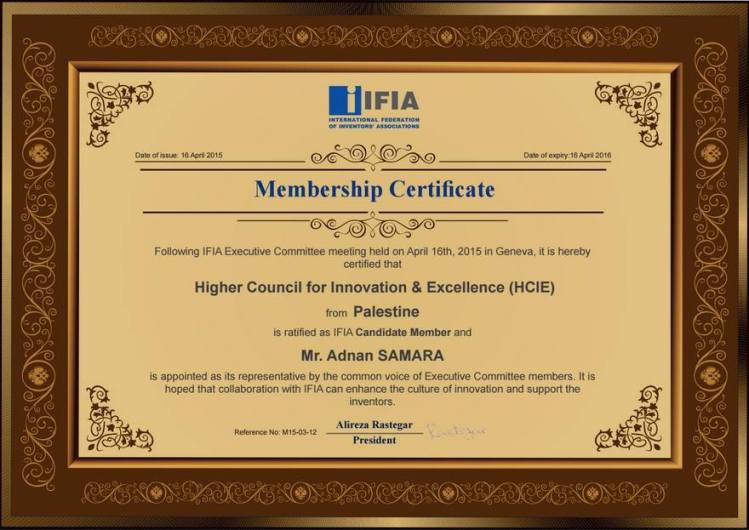 رام الله- الاقتصادي- قررت المنظمة الفدرالية الدولية لاتحادات المخترعين (IFIA) ومقرها الرئيس في سويسرا، قبول المجلس الاعلى للإبداع والتميز عضوا فيها.