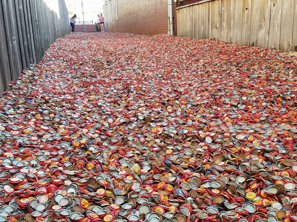 كما وساهمت عدة شركات إلى جانب الطلاب في الحفاظ على هذا المكان على مر السنين. وقد امتلئ بمئات الآلاف من أغطية الزجاجات التي جاءت من ماركات أمريكيّة، وتحول المكان لمعرض مشهور في المنقطة.