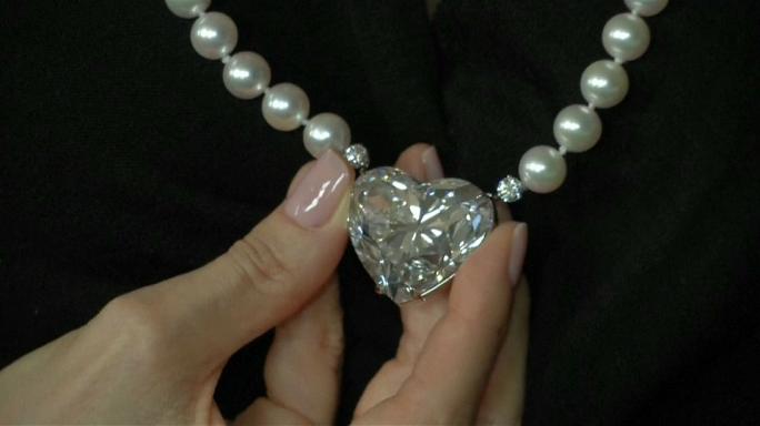 وتتألف هذه القطعة الاساسية في مزاد ايار/مايو التقليدي للمجوهرات الفاخرة لهذه الدار العريقة، من عقد من اللؤلؤ مزين بهذه الماسة البالغ وزنها 92 قيراطا.