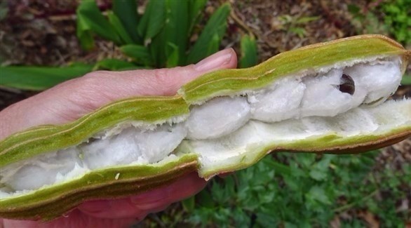 وتتميز الشجرة بأوراق باللونين الأبيض والأصفر، تتطور إلى ثمار مطاولة يوجد بداخلها بذور سوداء اللون قاسية، محاطة بنسيج أبيض اللون حلو المذاق يشبه طعمه الآيس كريم بالفانيلا، بحسب موقع ذا ويست الإلكتروني.