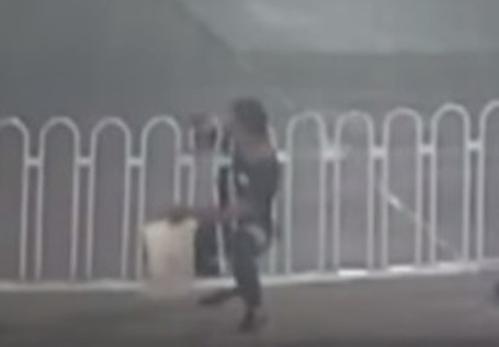 وظهر الرجل في مقطع فيديو عبر موقع يوتيوب لأحد المارة يسير على الطريق، حيث أعتقد أن جسمه نحيف بما يكفي للعبور بين قضبان سور حديدي، لكن لسوء حظه، حشر نفسه بين القضبان ولم يتمكن من الخروج إلا بمساعدة مجموعة من الضباط، حيث حاولوا توسيع القضبان بأيديهم ليخرج سالماً.