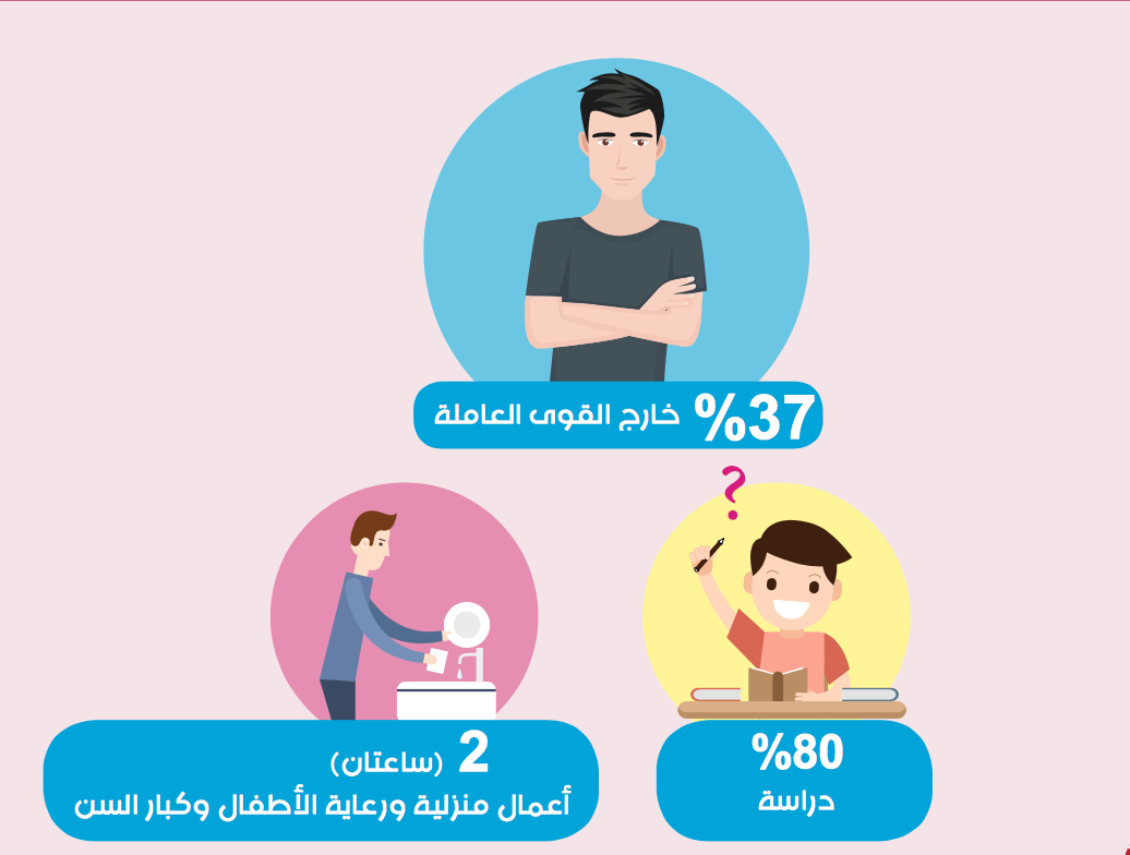 ويورد التقرير أن 25% من الشباب خريجي الجامعات لم ينتقلوا بعد لسوق العمل، بينما النسبة ترتفع لدى الإناث إلى 58%، بينما نسبة 82% بالنسبة للإناث الشابات في فلسطين خارج القوى العاملة.