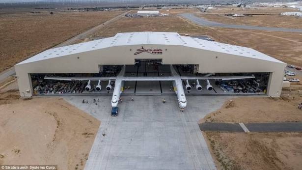 وجرى إخراج الطائرة، المؤلفة من جسمين اثنين، ويقترب حجمها من ملعب كرة قدم، لأول مرة من مستودعها في صحراء موهافي، في جنوب كاليفورنيا.