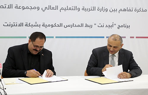 رام الله - الاقتصادي -  أطلقت وزارة التربية والتعليم العالي ومجموعة الاتصالات الفلسطينية، أمس، المرحلة النهائية من برنامج "أبجد نت"، الذي يهدف إلى ربط كافة المدارس الفلسطينية بشبكة الانترنت وتطوير المحتوى الإلكتروني التعليمي في المدارس الفلسطينية، من خلال توفير البنية التحتية المناسبة والتي تشمل توفير خدمة الانترنت بشكل مجاني من شركتي الاتصالات وحضارة، وذلك بالتعاون مع وزارة التربية والمؤسسات المدنية المختصة.