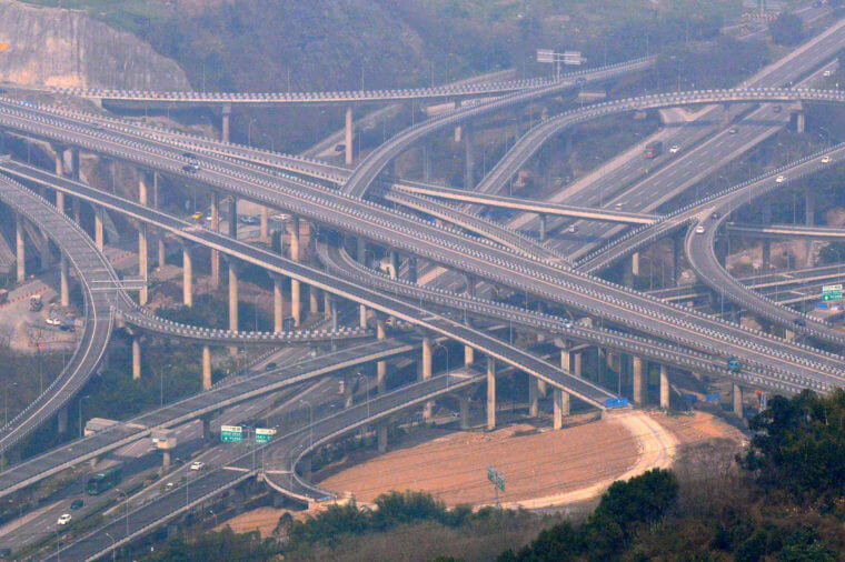 في مقاطعة نانان في تشونغتشينغ جنوبي الصين، يقع طريق سريع يُعتبر واحدًا من أغرب الطرق السريعة على الإطلاق! إذ يتألف الطريق من خمس طبقات و20 سلم من السلالم التي تتشعَّب في ثمانية اتجاهات مختلفة.