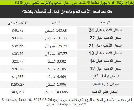 رام الله - الاقتصادي = جاءت اسعار غرام الذهب، في الاسواق الفلسطينية، اليوم السبت، لعيارات 18.21.22.24 على النحو التالي :-