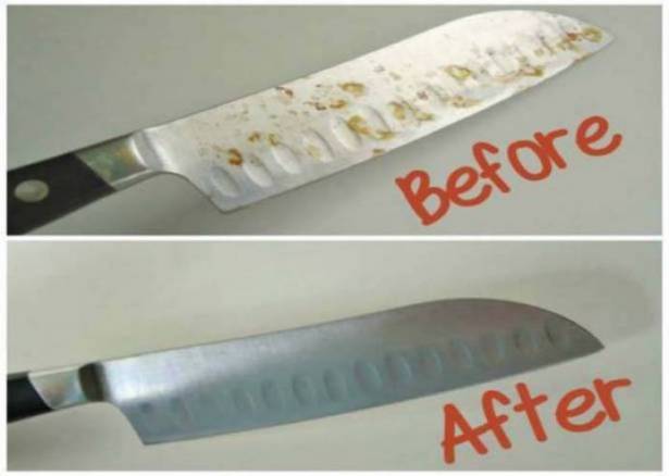 و لحسن الحظ هناك حيلة بسيطة جدًا نقدمها لكم لتنظيف الصدأ عن سكاكينكم.