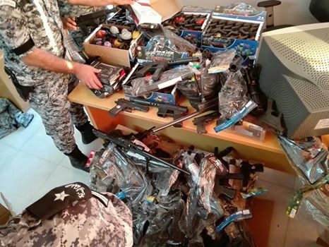 وفي محافظة جنين وبناء على معلومات حول وجود كمية من العاب الخرز والعاب نارية ممنوعه من التداول في أحد المحلات تم على الفور تحريك دورية إلى مكان المعلومة وتم ضبط الكمية وهي عبارة عن 48 بندقية و 32مسدس خرز. و 240 علية مفرقعان.1222العاب نارية ومفرقعات متنوعه حيث تم مصادرة الكميات المذكورة ومتابعة الإجراءات القانونية اللازمة للقضية