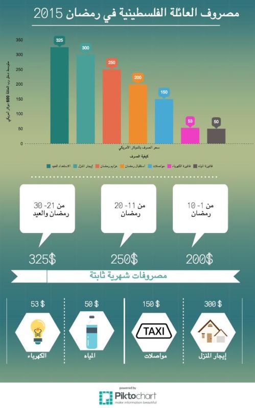 وتفيد المنظمة العربية للتنمية الإدارية ان الأسرة العربية تنفق في ثلاثين يوما رمضانيا كما تصرفه في تسعين يوما عاديا، وهذا ما أكده هنية بأن المصروف على العائلات الميسورة الحال يزيد في رمضان بنسبة ٣٠ %، في حين يزيد على العائلات المتوسطة بنسبة لا تقل عن الـ ٢٠٪.