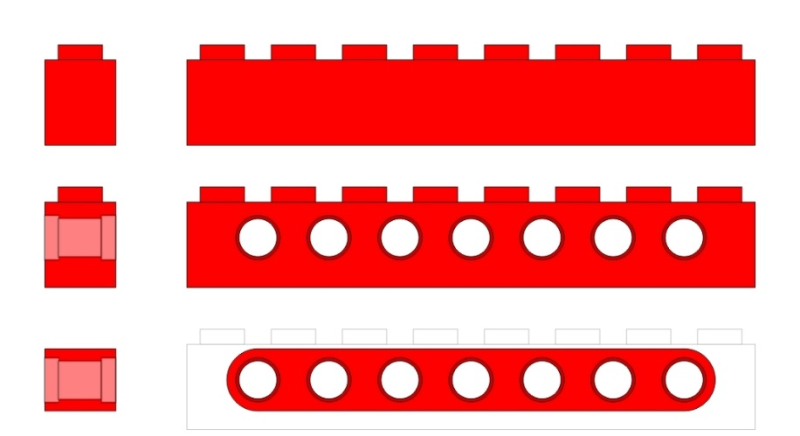 الصورة 1: يظهر في هذه الصورة تطور قطعة الألعاب التركيبية التقليدية الى القطعة الحديثة ولمستخدمة لبناء هيكل الروبوت التعليمي، الصورة مأخوذة من (Brighton Toy and Model Museum)