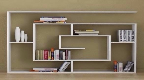 1- رف على شكل خط منحني بشكل عشوائي يضيف لمحة فنية للديكور، ويوفر فرصة لوضع الكتب والتحف بطريقة مميزة.