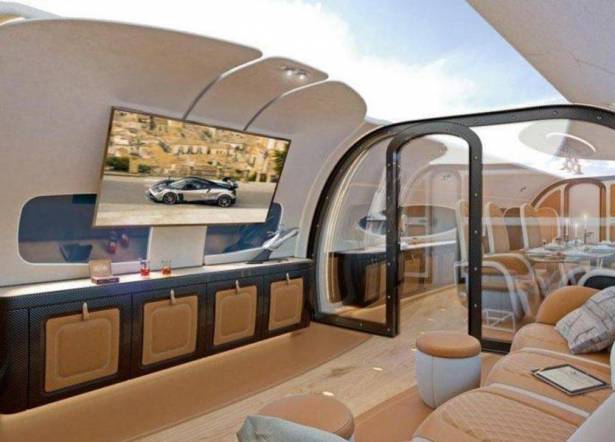 وتمتاز الطائرة بمزايا عديدة أخرى، مثل غرفة عشاء كاملة ومقاعد جلديّة فخمة، وتتّسع لثمانية أشخاص فقط. وقال مصمّمو الطائرة، إنّهم استوحوا تصميمها الداخلي من تصميمات الفنّان الإيطالي الشهير ليوناردو دافنشي.