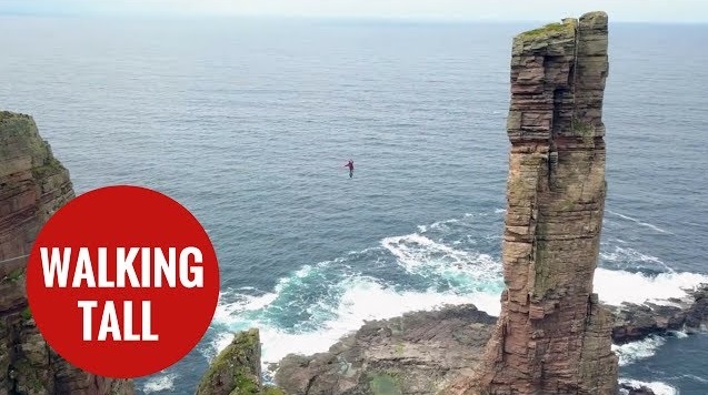 وكالات - الاقتصادي - أصبح مغامر ألماني أول شخص يمشي على حبل بين جرفين صخريين شاهقي الارتفاع يقعان على أحد الشواطئ في اسكتلندا.