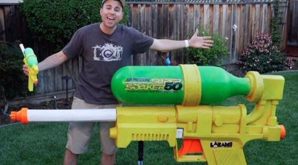 وعرض مارك روبير قدرات مدفع المياه الذي يبلغ طوله 7 أقدام، والذي يحمل لقب أكبر مدفع مائي في العالم في سجل غينيس للأرقام القياسية، على قناته على يوتيوب.