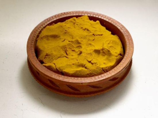 اطحني الكركم ليصبح على شكلِ بودرة ناعمة.
