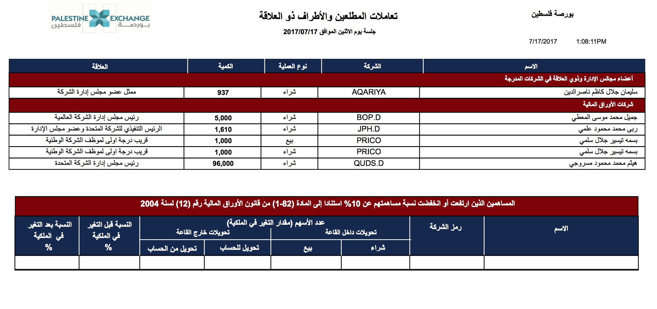 وتالياً، أبرز التداولات التي تمت اليوم الإثنين، من طرف المطلعين: