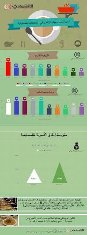 وبحسب الجهاز المركزي للإحصاء فإن متوسط إنفاق أسرة تتكون من 6 أشخاص في الضفة الغربية هو 1524 دولارا أمريكيا شهريا ، في حين وصل متوسط إنفاق الأسرة بنفس عدد الأفراد في قطاع غزة إلى 1065 دولارا أمريكيا.