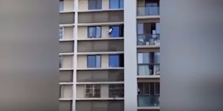 فيديو: مشهد صادم لطفلين يسيران على حافة نافذة بالطابق الـ 11