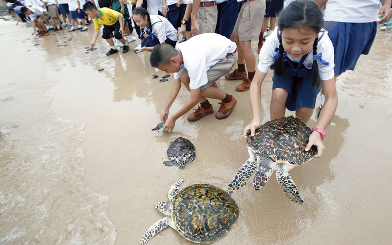 وكالات - الاقتصادي - يستعد الكثير من طلبة ومشاهير البحرية الملكية في مركز حماية السلاحف البحرية في تشونبوري بالقرب من العاصمة التايلاندية بانكوك اليوم الأربعاء لإطلاق 1066 سلحفاة إلى البحر احتفالاً بعيد ميلاد الملك الجديد ماها فاجيرالونجكورن الذي يحل هذا الأسبوع، وفقا لرويترز.