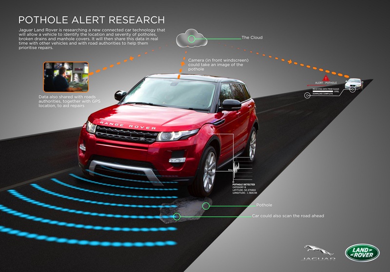 يعمل فريق أبحاث جاكوار لاند روڤر أيضاً مع شريك الابتكار "مجلس مدينة كوفنتري" لفهم كيفية مشاركة معلومات الطرق مع هيئات الطرق وما هي بالضبط المعلومات الأكثر فائدة بالنسبة لفرق صيانة الطرقات وذلك بهدف تحديد أولويات الإصلاح".