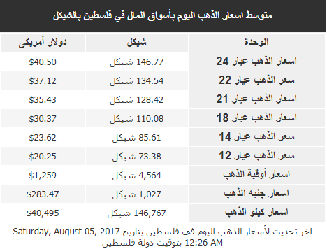 رام الله - الاقتصادي - جاء سعر غرام الذهب اليوم السبت في الاسواق المحلية على النحو التالي : -