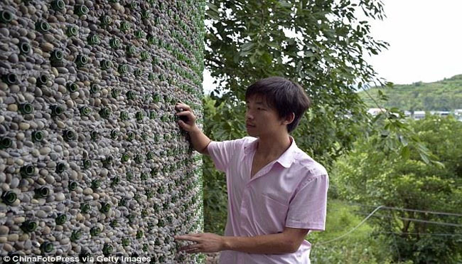 الاقتصادي- وكالات- شيد مهندس معماري صيني حديث التخرج مكتبه الخاص باستخدام 8500 زجاجة فارغة، وقد تمكن بالفعل من بناء طابقين لمكتبه على مساحة 27 مترًا مربعًا, يتكون الجزء العلوي فيه من 40 طبقة من الزجاج، بينما الجزء السفلي مكون من الحجارة.