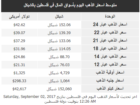 رام الله - الاقتصادي - جاء سعر غرام الذهب، اليوم السبت في الاسواق المحلية لعيارات 18.21.22.24 على النحو التالي :-