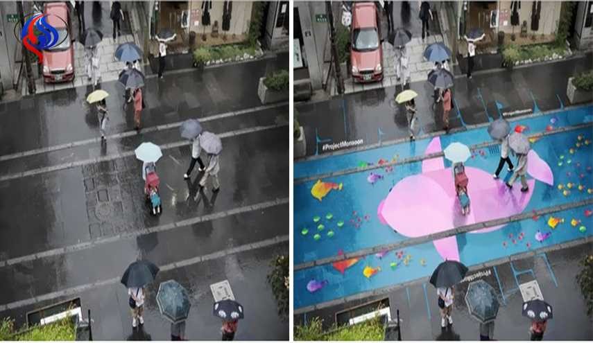 وكالات - الاقتصادي - قام فريق من المصممين في كوريا الجنوبية باختراع طريقة لنشر البهجة في أعين الناس لما يهطل المطر لمدة طويلة وذلك بإنشاء لوحات ضخمة نابضة بالحياة تظهرفي الشوارع عندما تمطر. هذا المشروع تمت تسميته بـ "مشروع الرياح الموسمية"