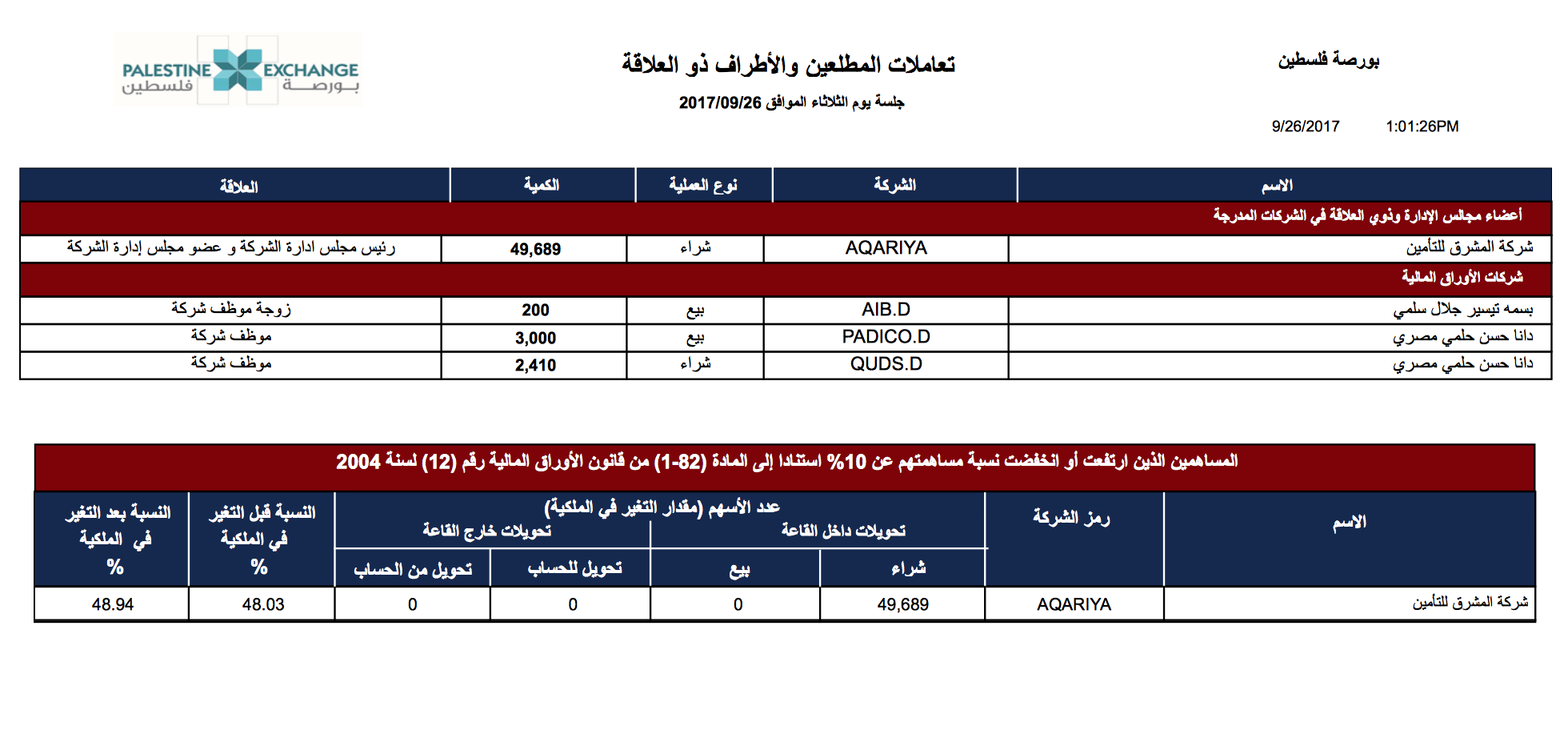 وينطبق مصطلح الأشخاص المطلعون على إدارة الشركة وموظفيها ومستشاريها ومدققيها والعاملين المطلعين في السوق كشركات الوساطة، وأقارب الإداريين والموظفين من الدرجة الأولى.