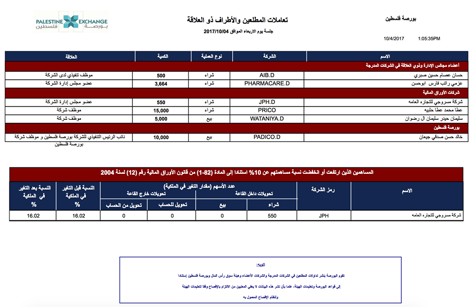 وتالياً، أبرز التداولات التي تمت اليوم الاربعاء، من طرف المطلعين: