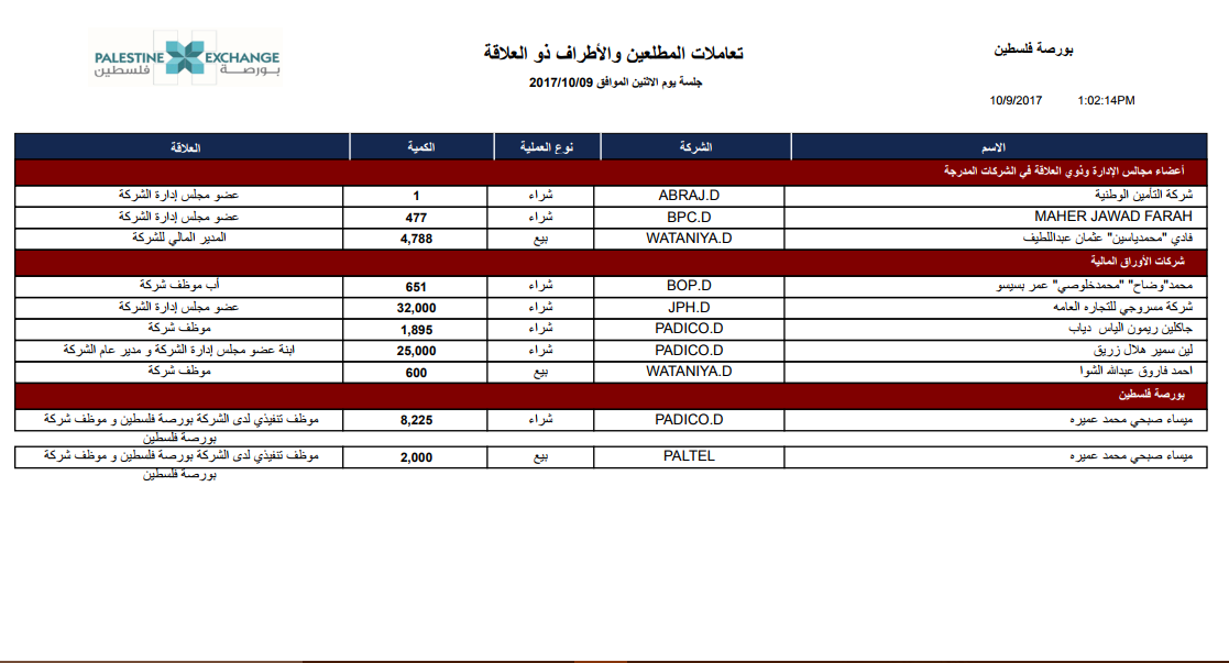إليك تداولات المطلعين في بورصة فلسطين اليوم الاثنين