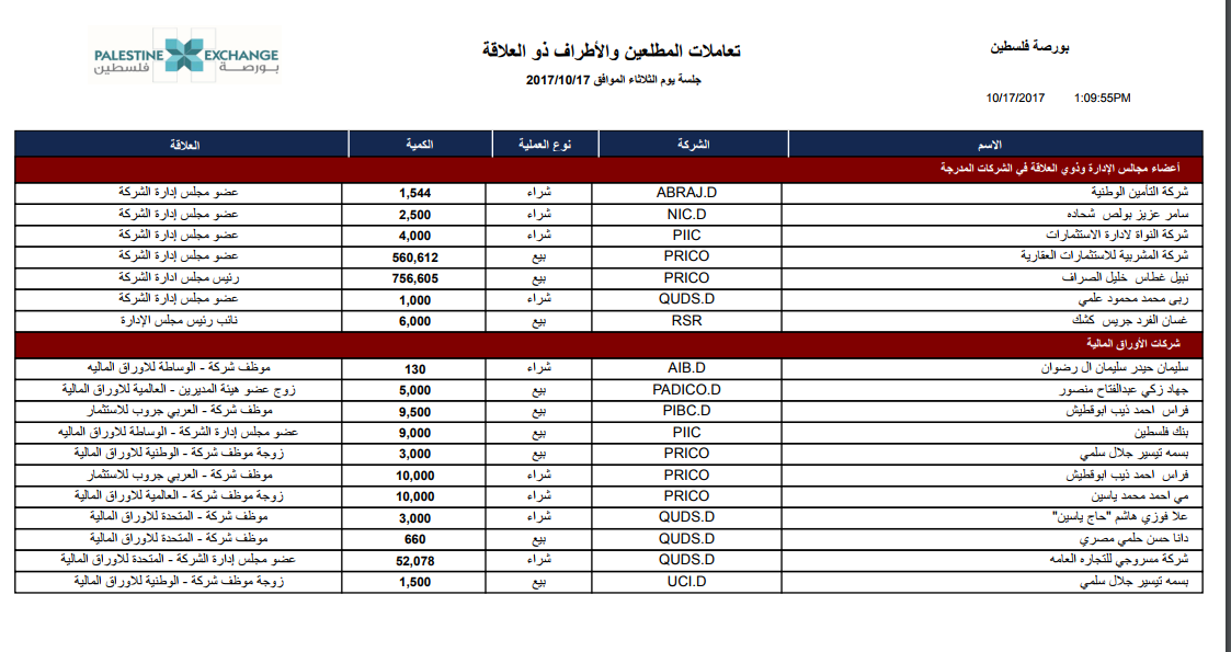 إليك تداولات المطلعين في بورصة فلسطين اليوم الثلاثاء