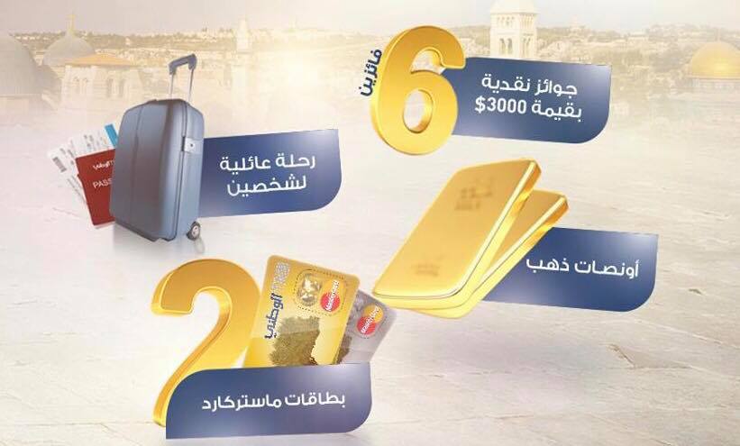 رام الله - الاقتصادي - أطلق البنك الوطني حملة ترويجية خاصة لسكان القدس تشمل سحوبات على عدد من الجوائز القيمة لعدة فائزين لكل من يمتلك حسابا مهما كان نوعه لدى فرع ضاحية البريد.