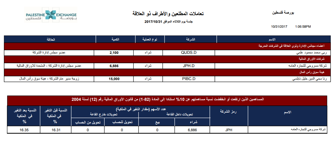 وتالياً، أبرز التداولات التي تمت اليوم الثلاثاء، من طرف المطلعين: