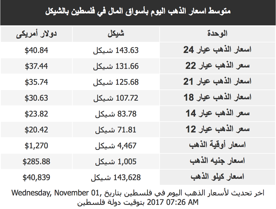 أسعار الذهب في فلسطين لليوم الأربعاء