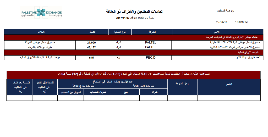 وتالياً، أبرز التداولات التي تمت اليوم الثلاثاء، من طرف المطلعين: