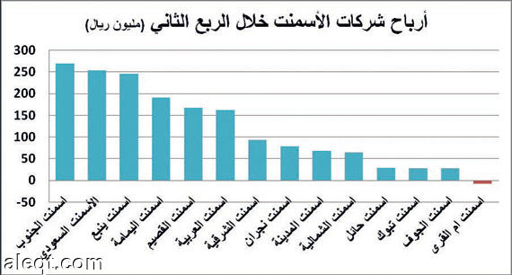ومن بين 14 شركة أسمنت يضمها القطاع في سوق الأسهم السعودي، تراجعت أرباح ست شركات، وسجلت شركة واحدة "أم القرى" خسائر، فيما ارتفعت أرباح سبع أخرى خلال الربع الثاني من العام الجاري، مقارنة بالفترة نفسها من العام الماضي.