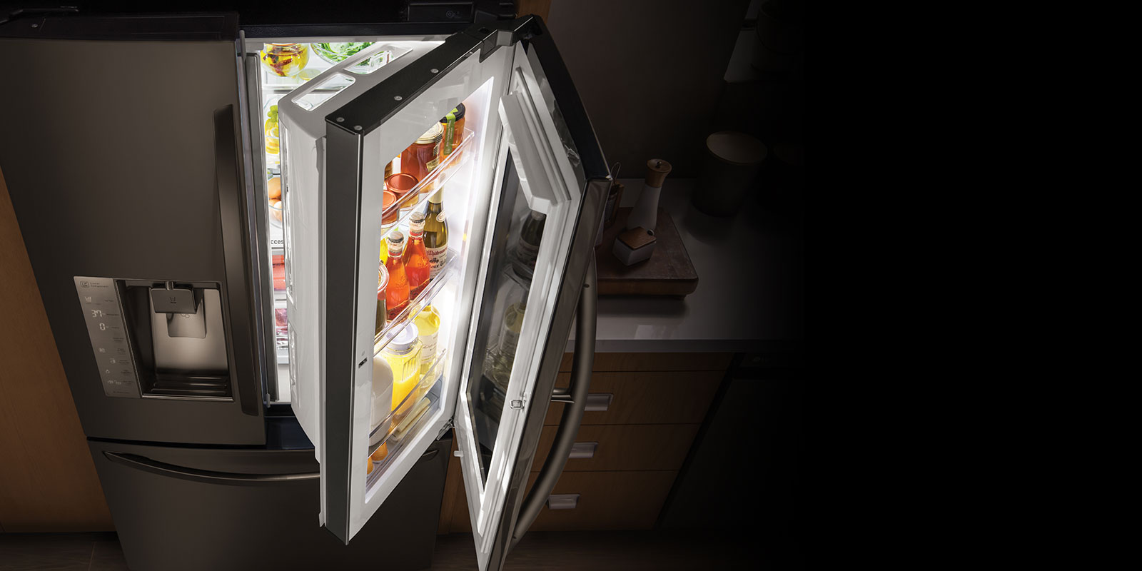 تمتلك الثلاجات التقليدية أبوابًا عادية تتضمن موزعات مكعبات الثلج، إلا أن ميزة إنستافيو في الباب من «إل جيLG » التي حازت على إعجاب النقاد في وسائل الإعلام والمتخصصين في قطاع الأجهزة المنزلية على حد سواء، لأنها تقدم لوحة زجاجية أنيقة غير مسبوقة بقطر 33 بوصة بالإضافة إلى مجموعة من الميزات المبتكرة. فمثلًا تشغّل الثلاجة إضاءتها الداخلية عندما تنقر على تلك اللوحة مرتين، ما يسمح برؤية داخلها دون فتح بابها وهدر بعض الهواء البارد خلال ذلك، فلا حاجة إلى فتح أبوابها لمعرفة ما في داخلها.