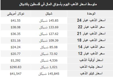 رام الله - الاقتصادي - جاءت أسعار غرام الذهب في فلسطين اليوم الإثنين، لعيارات 18.21.22.24 على النحو التالي: