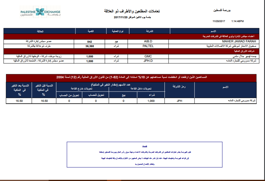 وتالياً، أبرز التداولات التي تمت اليوم الاثنين، من طرف المطلعين: