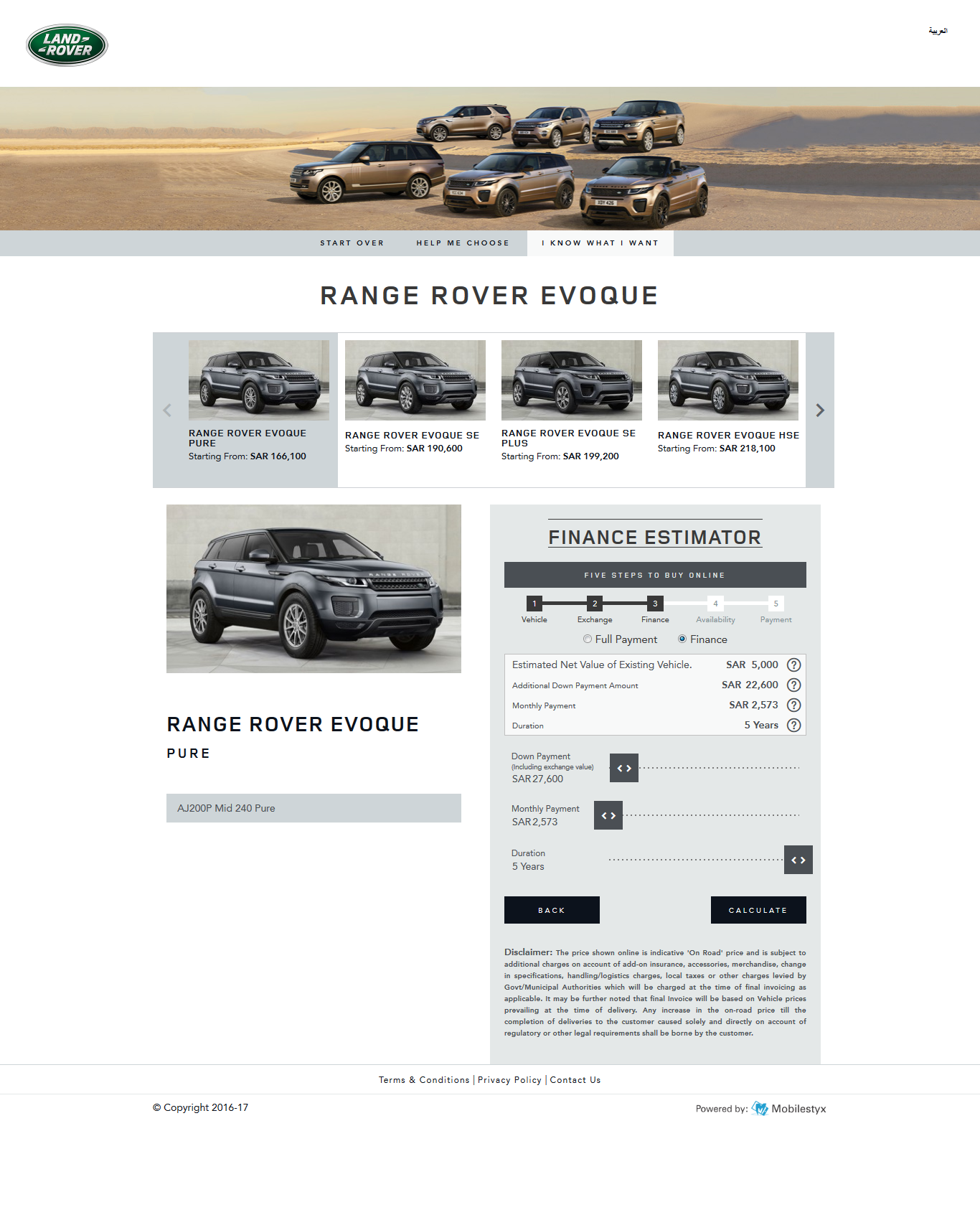 وقال بروس روبرتسون، العضو المنتدب لشركة "جاكوار لاند روڤر" في منطقة الشرق الأوسط وشمال أفريقيا: "يمكن لعملاء ’جاكوار' و’لاند روڤر' اختبار هذه التجربة الرقمية الديناميكية عبر المواقع الالكترونية لتجار التجزئة، حيث يتم توجيههم خلال عملية اختيار السيارة التي تناسبهم. وتتمثل القيمة المضافة في إتاحة الفرصة أمام العملاء لانتقاء سيارة من مخزون حي، والحصول على عروض الأسعار والتمويل وصولاً إلى حجز السيارة المطلوبة. أما إذا كان العميل يعرف مسبقاً نوع السيارة التي يريد اقتناءها، فتكون العملية أبسط من ذلك".