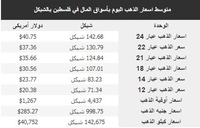 رام الله - الاقتصادي - جاءت أسعار غرام الذهب في فلسطين اليوم الأربعاء،  لعيارات 18.21.22.24 على النحو التالي: