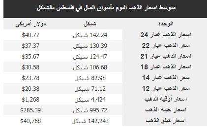 رام الله - الاقتصادي - جاءت اسعار غرام الذهب اليوم الخميس في فلسطين لعيارات 18.21.22.24 على النحو التالي : -