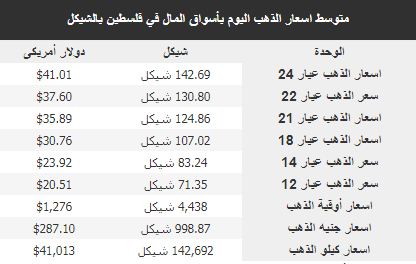 رام الله - الاقتصادي -جاءت اسعار غرام الذهب اليوم الأحد في فلسطين لعيارات 18.21.22.24 على النحو التالي : -
