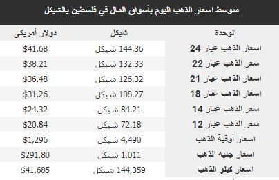 رام الله - الاقتصادي -جاءت اسعار غرام الذهب اليوم الجمعة في فلسطين لعيارات 18.21.22.24 على النحو التالي : -